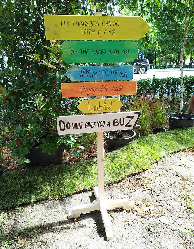 În cadrul activării Wanderlust Garden by Volkswagen, am realizat pancarde originale, adaptate conceptului și gândite să fie în același timp estetice și funcționale. Orice provocare poate deveni, prin ochiul unui artist, un obiect care atrage și servește scopului pentru care a fost creat.